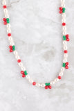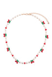 This lovely necklace features an intricate arrangement of cherry and pearl beads for a unique and eye-catching look. The lightweight design means you can wear it all day in complete comfort. Add a bit of sparkle to any ensemble with this beautiful beaded necklace.