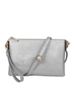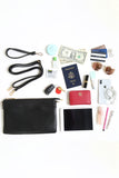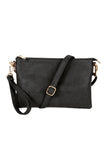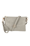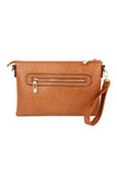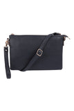 Skip the bulky bag, but still have everything you need when you carry your phone, keys, wallet and more in this flat vegan leather crossbody. This faux-leather crossbody bag features a sleek or ostrich embossed and shiny gold hardware for a clean, sophisticated look that goes with everything from a basic tee and jeans to a shift dress and heels. Its removable strap makes it easy to carry alone or throw into other purses.