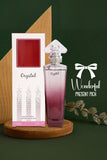 Introducing our CRYSTAL SPRAY PERFUME EAU DE PARFUM FOR WOMEN - the perfect scent for any occasion. Made with a 100ml/3.4 fl. oz. bottle, this perfume is long-lasting and comes in a convenient spray form. Experience the luxurious blend of floral and fruity notes, creating a scent that captures the essence of femininity. Elevate your everyday with this exquisite perfume.