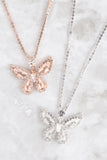 Bring a touch of glam to your everyday ensembles with these pendant necklaces. This long necklace is accented with a rhinestone embellished butterfly-shaped pendant and is finished off with a hanging chain for added movement and dimension. Pair with cascading teardrop earrings or rose gold-finished bangle bracelets for a coordinating accent.