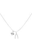 Bring luck and sparkle to your neckline with this Cubic Zirconia wishbone and clover pendant necklace! You’ll shine like a diamond with its dazzling cubic zirconia stones embedded in the timeless brass wishbone and clover design. Don't miss out - it's your lucky charm!