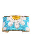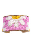 Bring a touch of whimsy to your look with this beautiful Daisy Flower Seed Bead Wide Cuff Bracelet. This bracelet features a multicolored seed bead design, creating a unique, eye-catching accessory. Bring a fresh pop of color to your wardrobe!