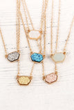 Go glam with these high-polished druzy stone necklaces. They catch the light beautifully, adding sparkle to your everyday outfits! Perfect for casual and formal events.
