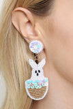 "These charming earrings feature a playful Easter rabbit design with a delicate basket filled with colorful seed beads. Perfect for adding a fun and festive touch to any outfit during the Easter season. These unique earrings are a must-have for any bunny lover and make a great gift too!"