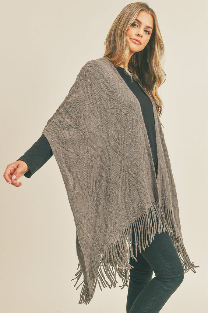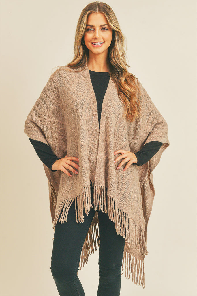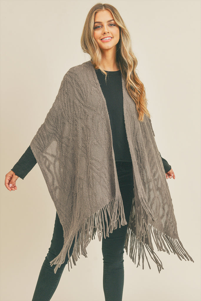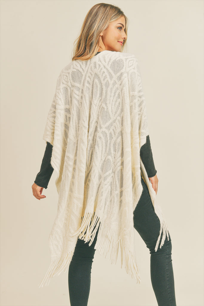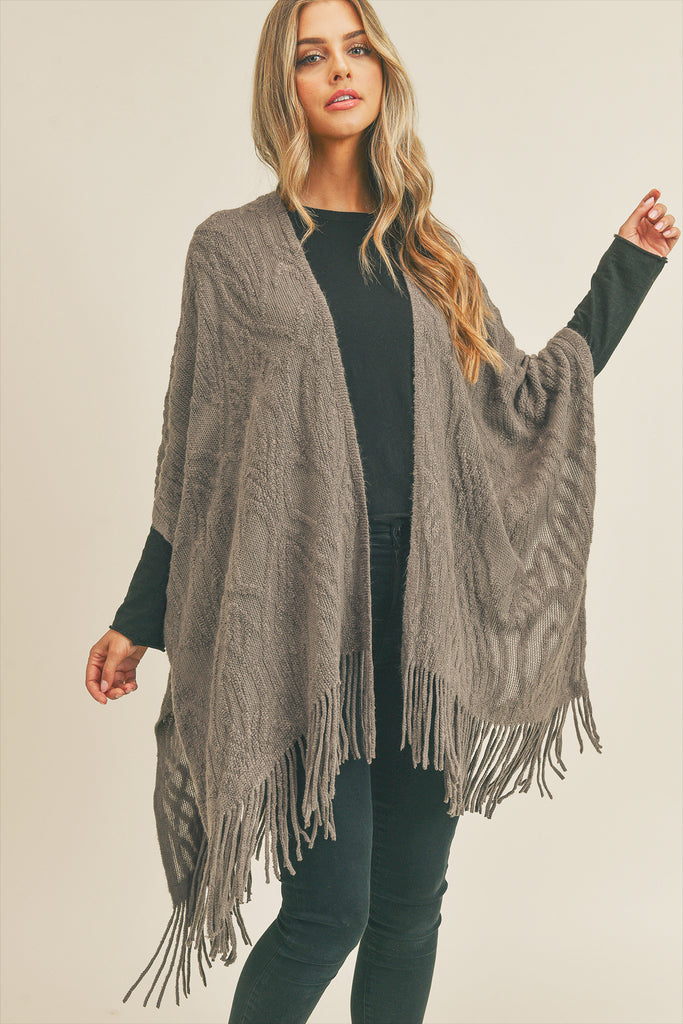 This embossed pattern tassel ruana is crafted from premium woven wool, providing a sumptuous feel. The distinctive design is pressed into the fabric, creating an eye-catching twist to the timeless look. Ideal for any outdoor event or adding a touch of flair to your living space.