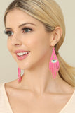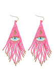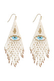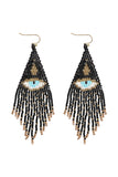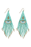 Protect yourself from the "evil eye" with these trendy seed bead fringe hook earrings. Add a touch of bohemian style to your outfit while warding off negative energy. Comfortable and easy to wear, these earrings will make a statement and keep you feeling confident and protected. Perfect for any occasion!