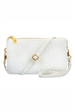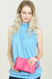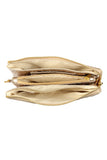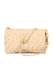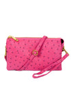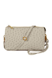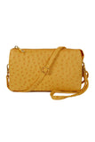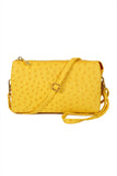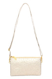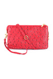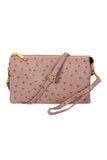 Skip the bulky bag, but still have everything you need when you carry your phone, keys, wallet and more in this flat vegan leather crossbody. This faux-leather crossbody bag features a sleek or ostrich embossed and shiny gold hardware for a clean, sophisticated look that goes with everything from a basic tee and jeans to a shift dress and heels. Its removable strap makes it easy to carry alone or throw into other purses.