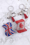 Carry your love and pride for your country with this stylish Flag Suede Rhinestone Keychain. The vibrant flag design and sparkling rhinestones make a statement while keeping your keys organized. The soft suede material adds a touch of elegance and the sturdy metal ring ensures your keys stay secure. Show off your patriotism with every use.