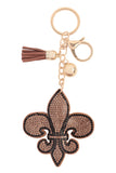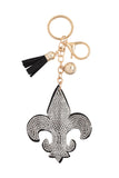 Effortlessly add a touch of elegance to your keys with our Fleur de Lis Rhinestone Tassel Keychain. Featuring a sparkling rhinestone accent and a chic tassel, it's both functional and fashionable. With this keychain, you'll never lose your keys again in style.