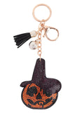 "Add some spooky style to your keys or bag with our Halloween pumpkin witch hat rhinestone tassel keychain. The perfect accessory for any witchy fashionista, this keychain features a beautiful rhinestone embellished pumpkin witch hat and a playful tassel. Show off your love for Halloween all year round!"