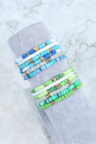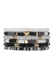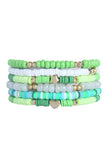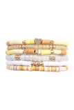 Why choose one bracelet when you can have four? Shine bright with this eye-catching Heishi Bead Stackable Multi-Layered Bracelet Set! Rock the stackable look with four layered bracelets featuring colorful and unique Heishi beads for a truly delightful arm party. Get ready to make a statement!