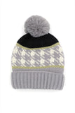 Stay fashionable and cozy with this houndstooth beanie with a fuzzy pompom on top! It's the perfect way to stay stylish while you brave the cold winter weather. Get ready to 'paws' and admire the compliments while you stay warm!