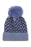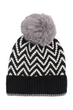 Stay warm in cozy style with this knitted chevron print beanie! The colorful pompom on top adds a dash of funk to your ensemble. Kick a little winter chill with this beanie and watch your style level ascend. (It's a win-win!).
