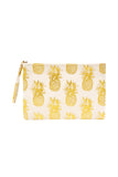 This gold foil pineapple print pouch is great for travel it is super lightweight. Throw it in your beach bag, your luggage, or just keep it in the car to hold your essential items, will have you booking a flight just to carry this cute and summery pouch around!