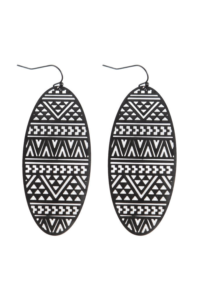 Revamp your style with these oval shape tribal pattern fili fish hook earrings. With a unique tribal pattern, these earrings will make you stand out in any crowd. Add a dash of sophistication to your look with these timeless pieces.