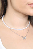 Make a statement with this layered necklace featuring a pearl and butterfly design! You'll be sure to stand out in a crowd with this elegant yet spunky piece of jewelry! Get ready for the compliments to start flying (literally).