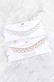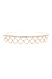 This lovely bridal choker necklace is adorned with sparkling rhinestones and beautiful fish net lace to create a timeless and unforgettable accessory. The perfect finishing touch for your special day.