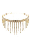 Add a touch of glamour to any outfit with our Rhinestone Fringe Dangle Choker Necklace. The intricate design and delicate rhinestones add a touch of elegance, perfect for any occasion. Be the center of attention with this stunning accessory that will elevate your style.