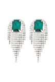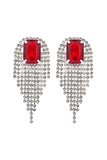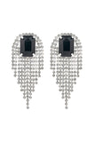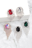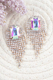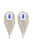 Look "hoopy" with these rhinestone square fringe tassel earrings! Add a little sparkle and pizzazz to your outfit with this fiercely stylish and seriously chic accessory. Show off your unique style and have a few laughs, too!