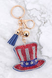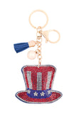Add a patriotic touch to your keys with our USA Patriotic Hat Rhinestone Tassel Keychain. Featuring a sparkling rhinestone tassel and a detailed patriotic hat, this keychain is a perfect accessory for any proud American. Show your support and add some style to your keys with this eye-catching keychain.