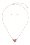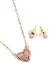 Celebrate your love with our Valentine Heart Druzy with Rhinestone Pendant Necklace and Earring Set! The heart-shaped druzy pendant and earrings are accented with sparkling rhinestones, adding a touch of glamour to any outfit. Perfect for Valentine's Day or any romantic occasion!