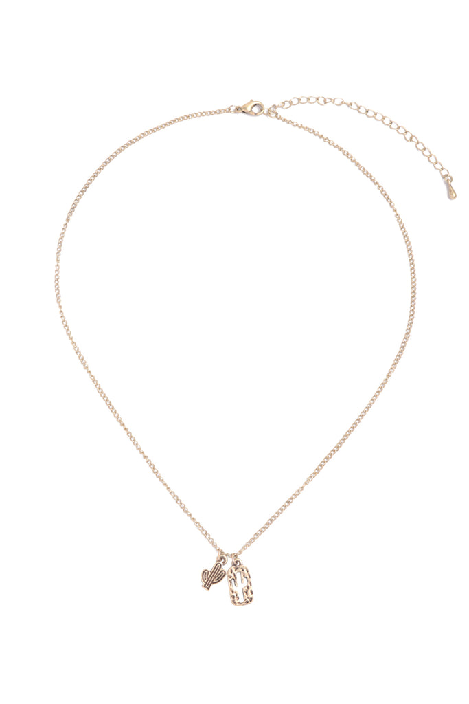 Rock your southwest style with this unique brass Western Cactus Multi Charm Pendant Necklace! Show off your southwestern flair with the three cacti charms and the intricate brass detailing. Feel the bold, fresh vibe!
