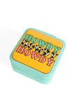 Keep your jewelry safe and organized on your travels with the Western Howdy Leather Travel Jewelry Box. Compact and stylish, it features multiple compartments to keep your accessories secure and easily accessible. The perfect companion for any trip, keeping your valuables protected and ready to wear.