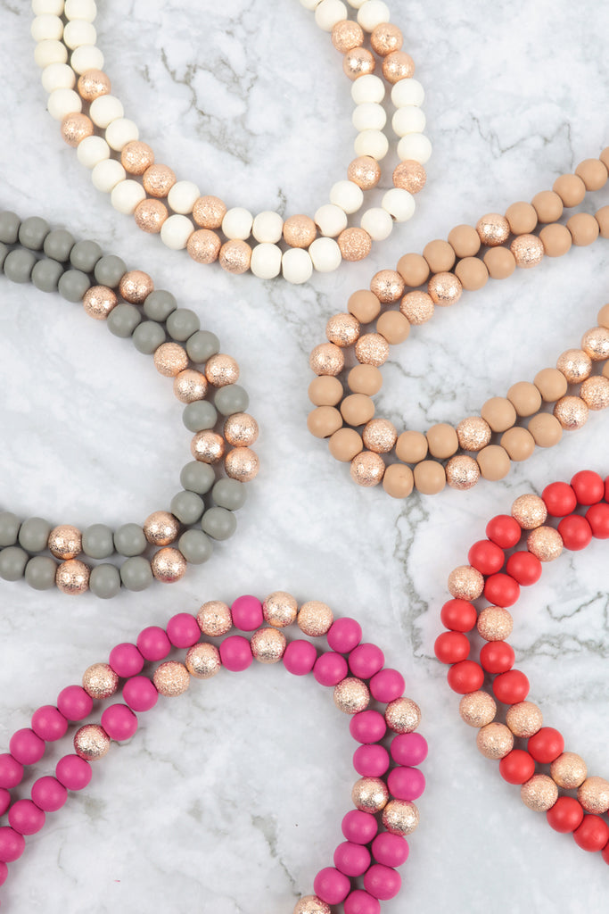 Brighten your wardrobe with this stunning two-line beaded necklace! Featuring wood and CCB beads, it adds the perfect touch of color and class to any look. Perfect for any occasion, you won't regret it!