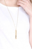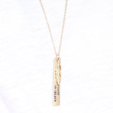 A simple, yet eye-catching dainty longline necklace adorned with a dangling charm and an engraved blissful message. Perfect to wear over simple tops or deep necklines.