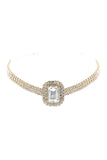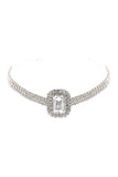 Make a statement with this glamorous 3-row choker necklace adorned with sparkling rhinestones in a BIG RECTANGLE shape. Look no further for fun, glitz and glam. Get ready to shine!