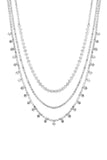 Dazzle in this elegant 3 layered statement necklace featuring sparkling cubic zirconia and rhinestones. Perfect for adding a touch of sophistication to any outfit.