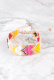 "Show your love with our Heart Seed Bead Pull Tie Bracelet. Made with high-quality materials, this bracelet features a delicate heart design and an easy pull tie closure for a secure and comfortable fit. Perfect for any occasion, it's a must-have addition to your jewelry collection."