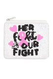 "Show your support with this pink ribbon awareness coin pouch featuring sequins and seed beads. Perfect for storing loose change and small items, while also raising awareness for a good cause. Join our fight today!"