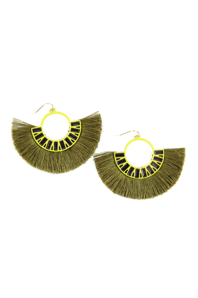 Add breezy, boho-chic to your everyday style with these delightful hinge earrings. Pretty tassels in a bold hue fan out beneath these gold-finished earrings, adding a fun flair to any outfit you choose to pair them with. Pair these tassel earrings with anything from flowy skirts to basic tee-and-distressed jeans for dainty, feminine flair.