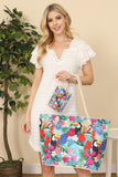Add a touch of fun and whimsy to your everyday style with our Tropical Bird Print Tote Bag. The matching wallet provides convenience and functionality. Perfect for trips to the beach, shopping, or everyday use. Let this eye-catching design brighten up your day.