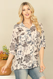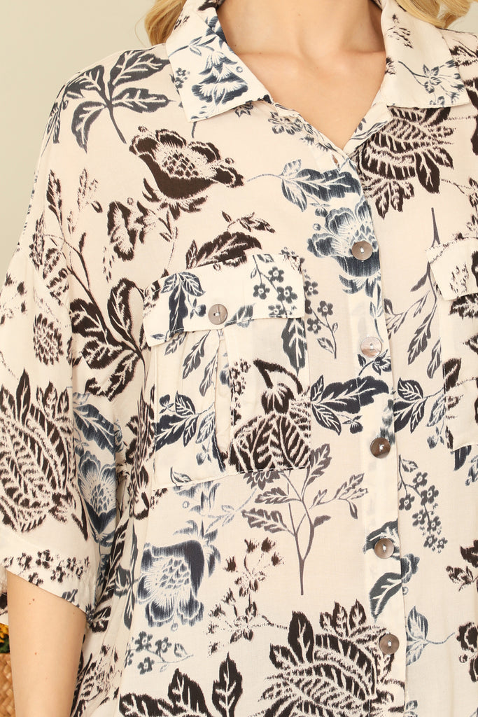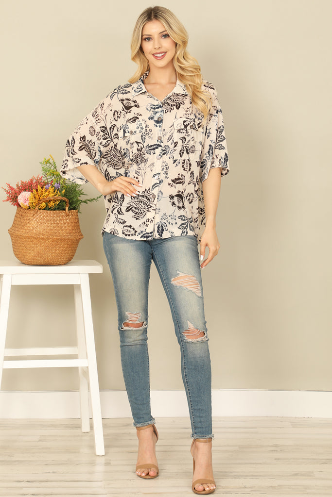 Introducing our BACK QUARTER SLEEVE FRONT POCKET PATCH PRINTED TOP! This versatile top not only offers a stylish patch print, but also features a convenient front pocket and quarter length sleeves. Perfect for any occasion, this top combines fashion with functionality for a must-have addition to your wardrobe.
