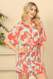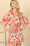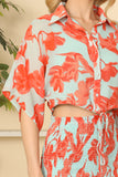 Upgrade your wardrobe with our Floral Half Sleeve Button Top Smocked Ruffle Hem Skirt. This versatile piece will elevate any outfit with its charming floral pattern and on-trend smocked and ruffle details. Whether you're dressing up for a special occasion or keeping it casual, this top and skirt combo will make you look and feel effortlessly stylish.
