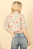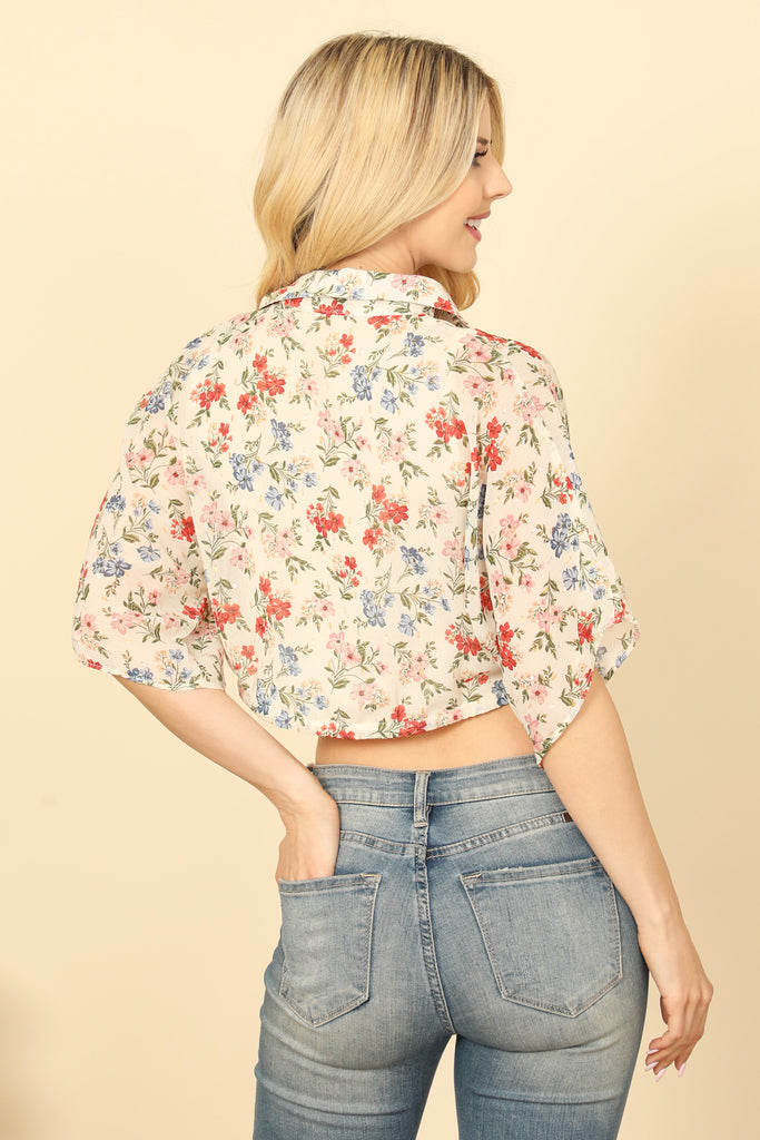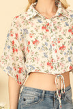 Elevate your style with our Floral Half Sleeve Collared Waist Tie Crop Top. This trendy top features a delicate floral pattern and a flattering waist tie that accentuates your curves. The half sleeves and collared neckline give a chic and sophisticated look. Perfect for any occasion, whether it's a casual day out or a special event.