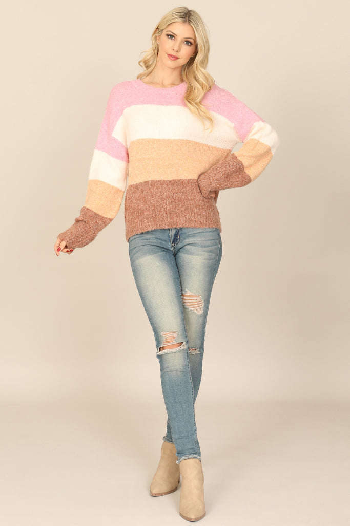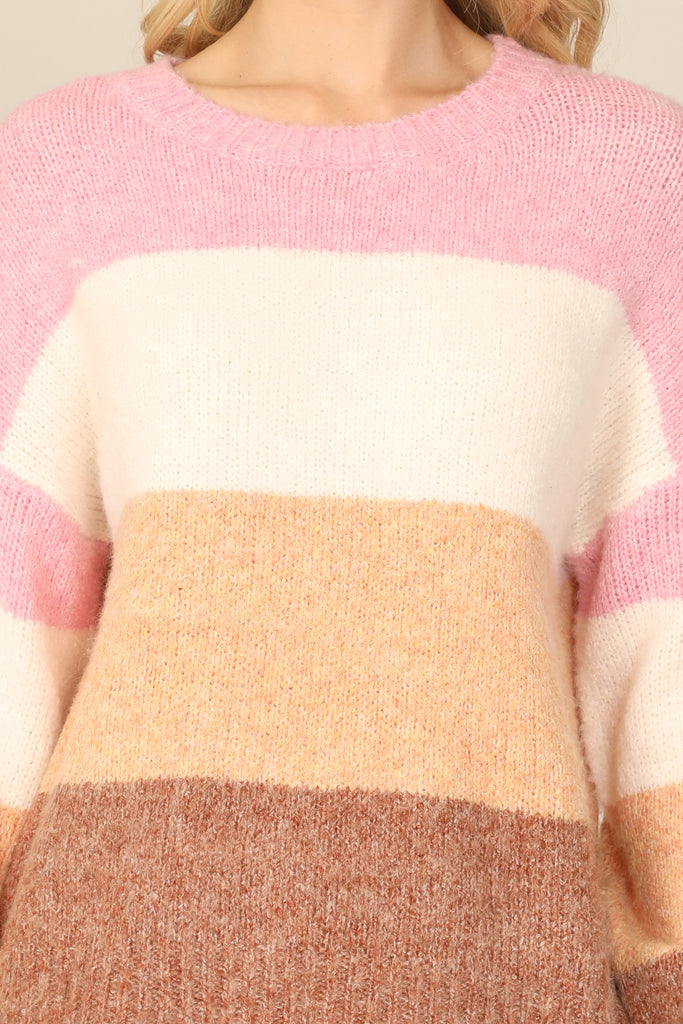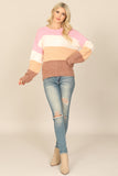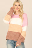 Get cozy and stylish with our Long Sleeve Color Block Knitted Top! This top features a unique color block design that adds a pop of fun to any outfit. With long sleeves, it's perfect for staying warm and fashionable in the colder months. Upgrade your wardrobe with this must-have top!