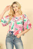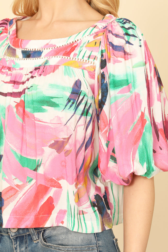 Introducing our MULTI PRINT HALF PUFF SLEEVE PRINTED HANGING BLOUSE TOP! This trendy top features a multi print design and half puff sleeves, giving you a unique and chic look. Made from quality materials, it's comfortable, stylish and perfect for any occasion. Add it to your wardrobe for a touch of effortless charm.