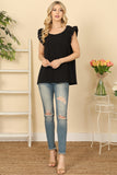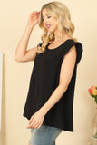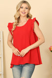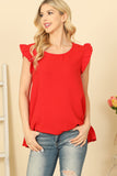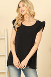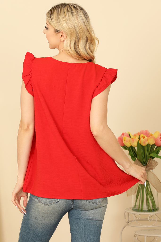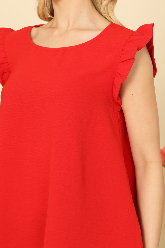 This versatile top features ruffle sleeves, a round neck, and a solid color design. Elevate your everyday look with this stylish and comfortable piece. Perfect for any occasion, from casual outings to formal events. You'll love the feminine touch that the ruffle sleeves add to this classic top.