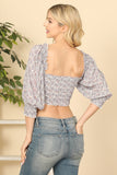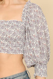 This Smocked Puff Quarter Sleeve Printed Crop Top features a smocked design and quarter sleeves, providing a comfortable and stylish fit. The puff sleeves add a touch of femininity, while the print adds a fun pop of color. Perfect for everyday wear or dressing up for a night out.