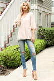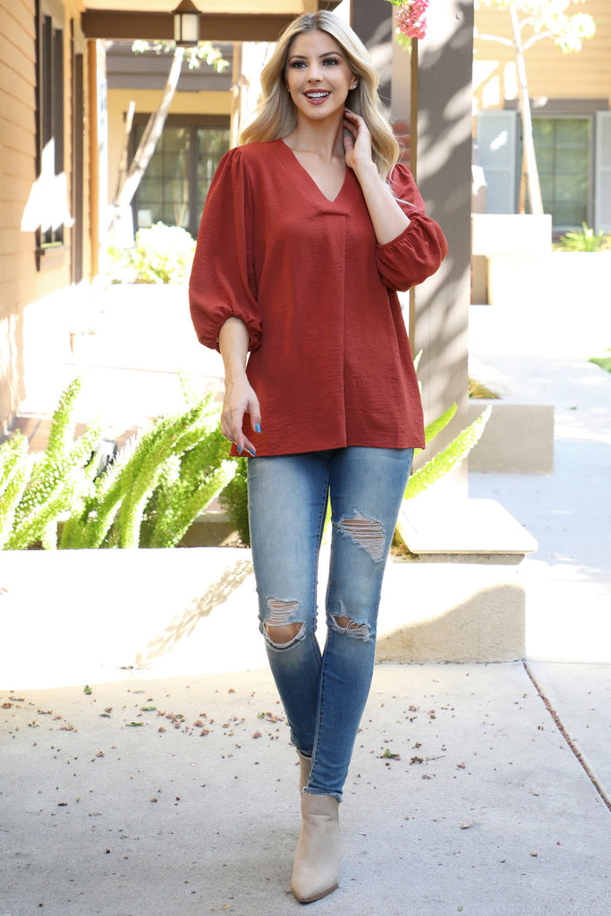 Look stylish and stay comfortable this season with this beautiful V-neck top. Featuring a lightweight woven fabric, elastic bands at the neckline and tunnel sleeves, it is perfect for the transitioning weather.