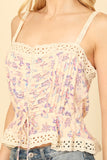 Elevate your wardrobe with our WIDE STRAP LACE DETAIL PLEATED FRONT WAIST TIE PRINTED TOP. This versatile and stylish top features delicate lace detailing and a flattering waist tie, while the pleated front adds a touch of sophisticated charm. Perfect for any occasion, this top will effortlessly elevate your look.