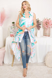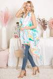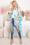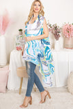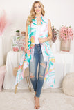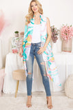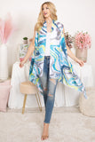 ABSTRACT PRINT KNEE LENGTH OPEN FRONT KIMONO VEST