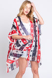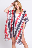 This lightweight kimono features an eye-catching American flag star print, perfect for any patriotic occasion. Stay stylish and comfortable with this versatile piece that can be dressed up or down. Show off your love for your country with this must-have addition to your wardrobe.