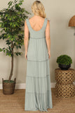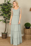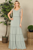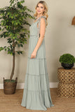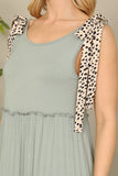 Animal Print Tie Strap Tiered Solid Maxi Dress