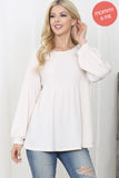 Cuddle up in cozy style with the Baby Doll Waffle Long Sleeve Top! This soft and stretchy top is perfect for chilly days, with its comfortable fit and waffle knit fabric. Perfect for everyday wear, the Baby Doll Waffle Top will become your new go-to.
