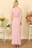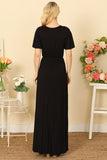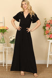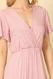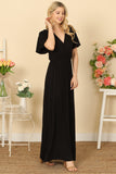 BELL SLEEVE SURPLICE NECK PLEATED WAIST SOLID MAXI DRESS