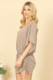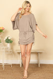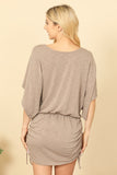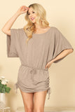 BOAT NECK DOLMAN SLEEVE SIDE RUCHED WAIST TIE MINI DRESS